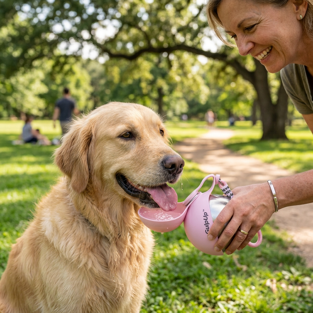 "I don't know what happened but Cooper has associated GULPUP with adventure. The second I grab it off the counter he loses his mind spinning, barking, scratching at the door. We haven't missed a morning walk in 3 months. I think the bottle trained my dog better than I ever did. His vet commented on his coat and energy at his last checkup. I'm convinced it's because he's actually staying hydrated now instead of waiting until we get home. Ridiculous how much a water bottle changed our routine."